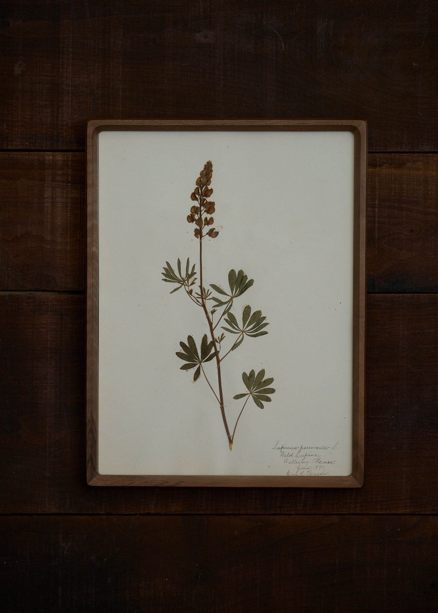 These botanical pressings were collected by Eva Beede Odell in the 1880's; each pressing is dated with the name of the plant species and the location where Eva collected the specimen. The pressings have all been carefully framed in gorgeous solid walnut frames that are ready for hanging. Each framed pressing includes a typed description about the origin of the pressings and a bit about Eva herself.
