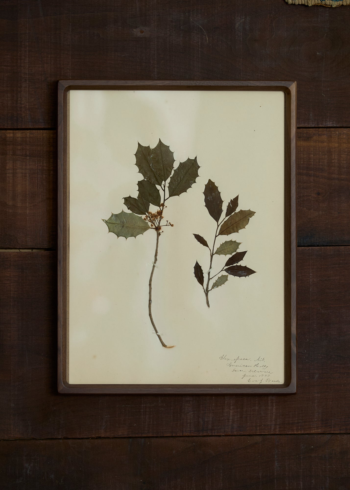 These botanical pressings were collected by Eva Beede Odell in the 1880's; each pressing is dated with the name of the plant species and the location where Eva collected the specimen. The pressings have all been carefully framed in gorgeous solid walnut frames that are ready for hanging. Each framed pressing includes a typed description about the origin of the pressings and a bit about Eva herself.
