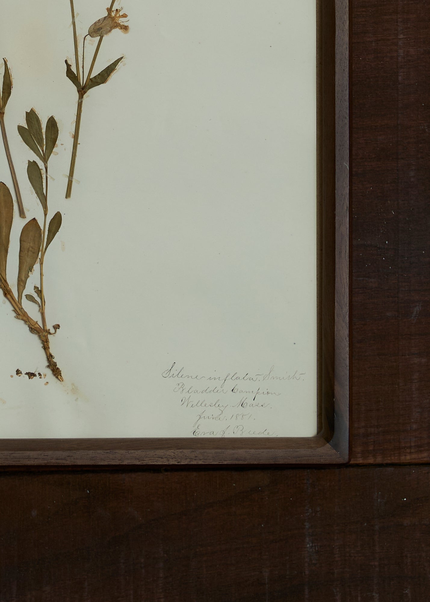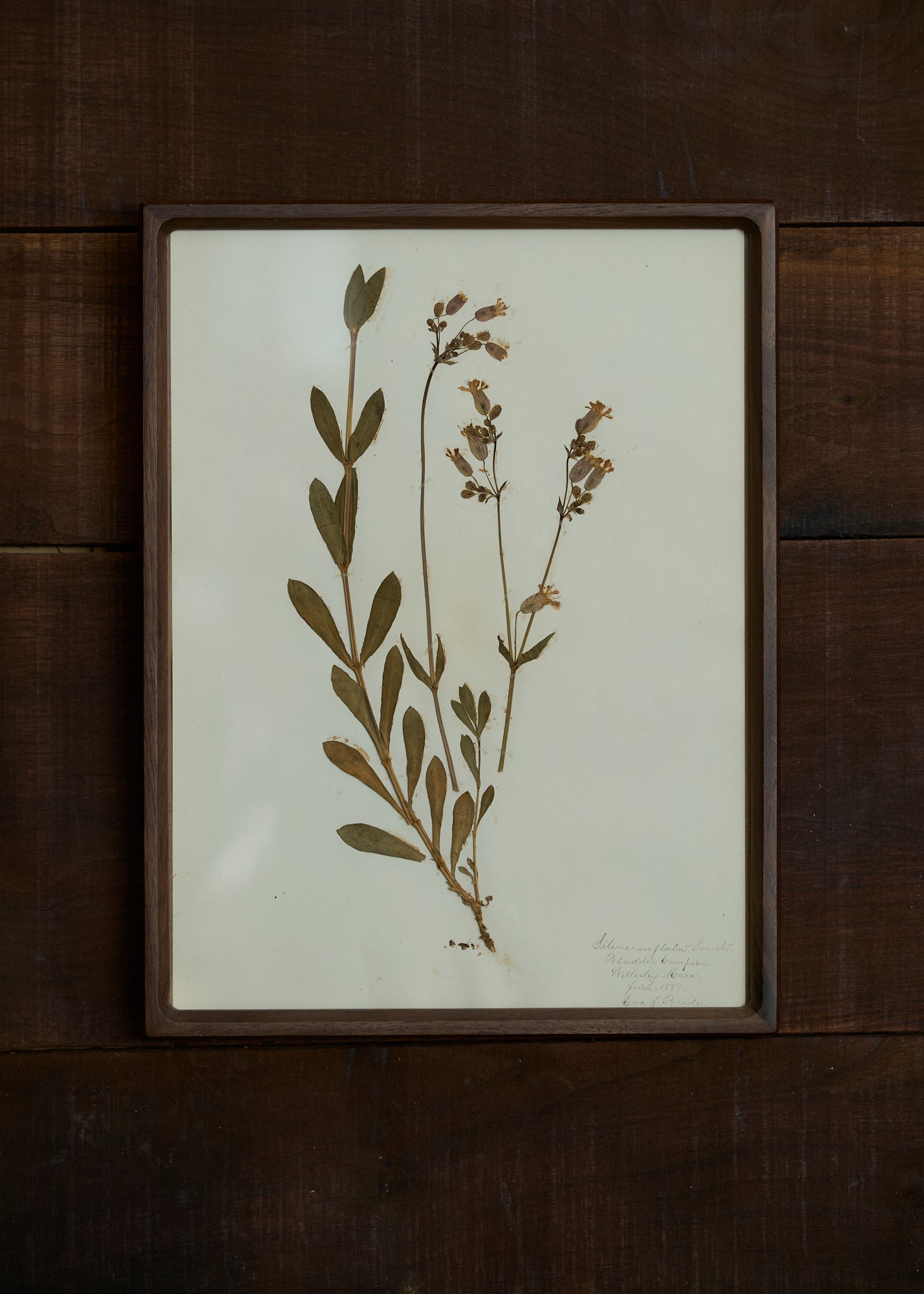 These botanical pressings were collected by Eva Beede Odell in the 1880's; each pressing is dated with the name of the plant species and the location where Eva collected the specimen. The pressings have all been carefully framed in gorgeous solid walnut frames that are ready for hanging. Each framed pressing includes a typed description about the origin of the pressings and a bit about Eva herself.