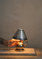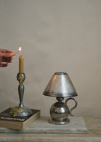 Measures 9" tall, 3.5" wide at base, shade 6" tall.
