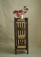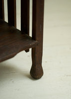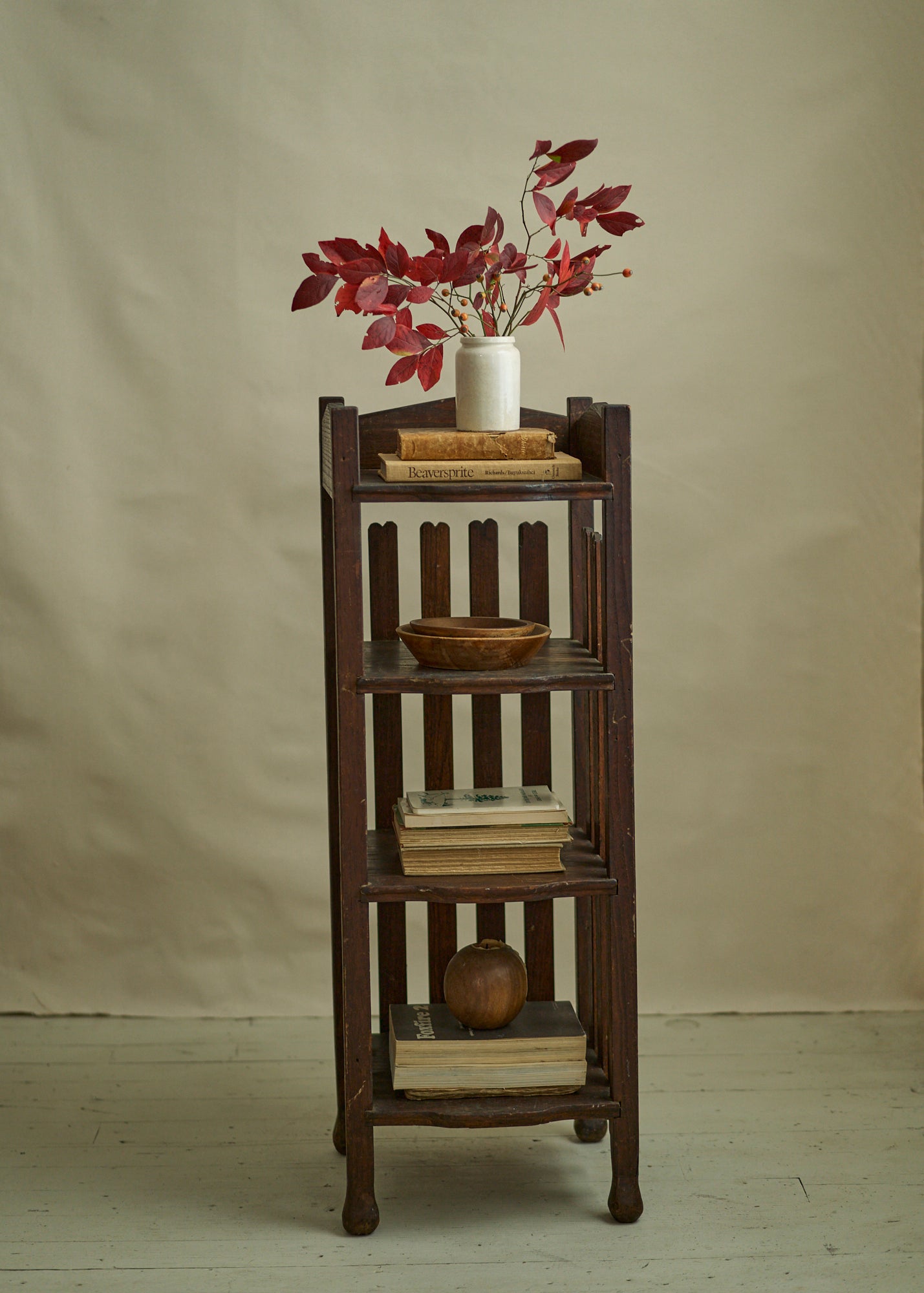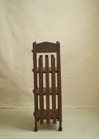 Wooden, antique mission style bookcase with unique carved detailing. Sturdy, durable, one of a kind.