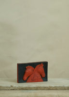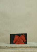 Hand painted folk art double horse carving. Set on a shelf or hang on the wall as decor.