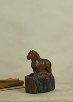 A hand carved folk art wooden horse desk caddy. A great primitive piece for storing pencils and pens or other small tools.