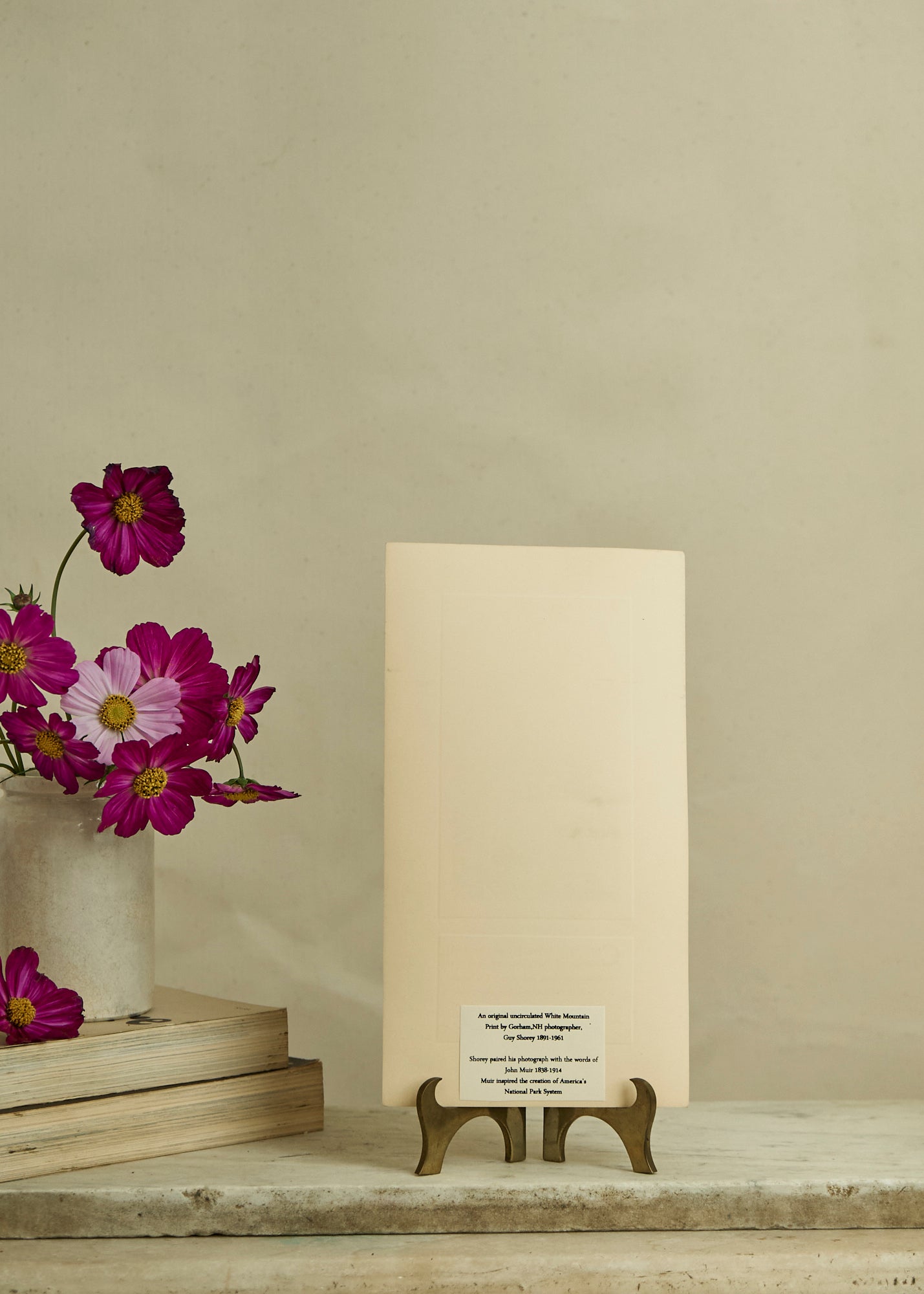 An original print by New Hampshire photographer Guy Shorey (1891 - 1961) of the White Mountains paired with a John Muir quote.