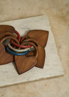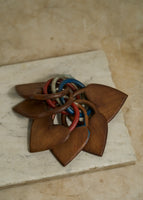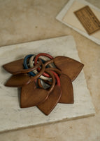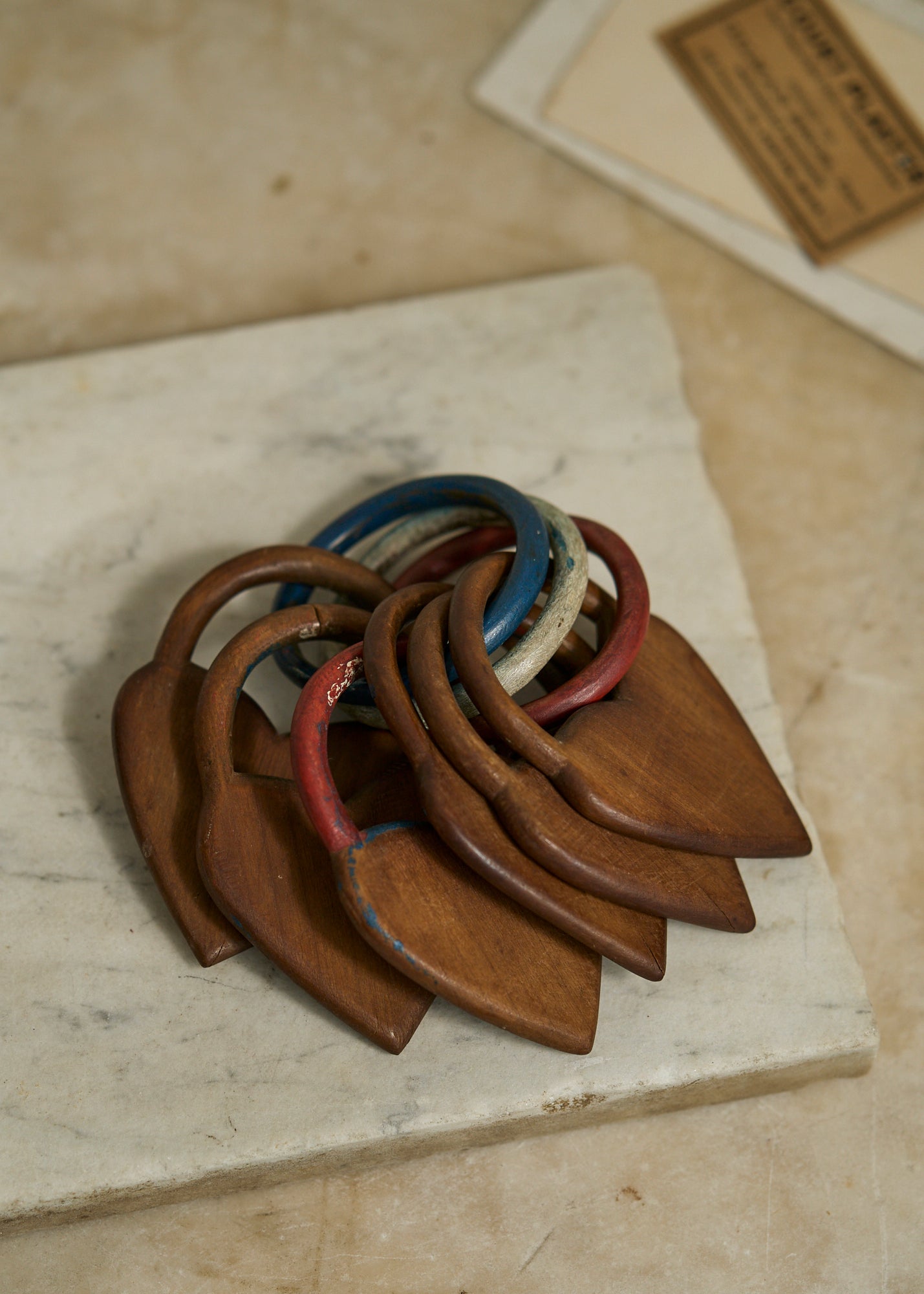 Stunning primitive folk art carved whimsy. A collection of six hand carved hearts attached to three painted wooden rings. Unique decor for any room or surface.