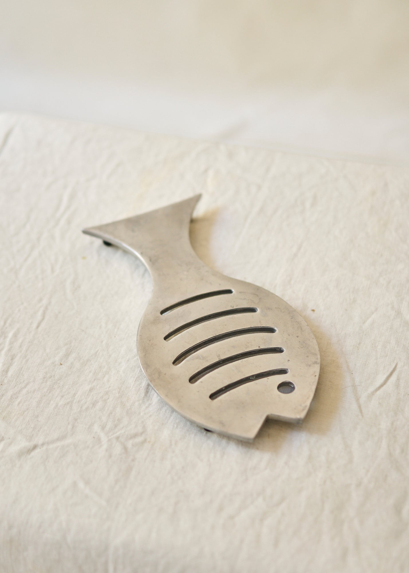 Mid century metal trivet in the shape of a fish. Adorable and practical! What more could you ask for?