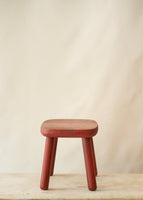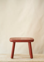 Gorgeous handmade wooden stool with the perfect aged red paint.