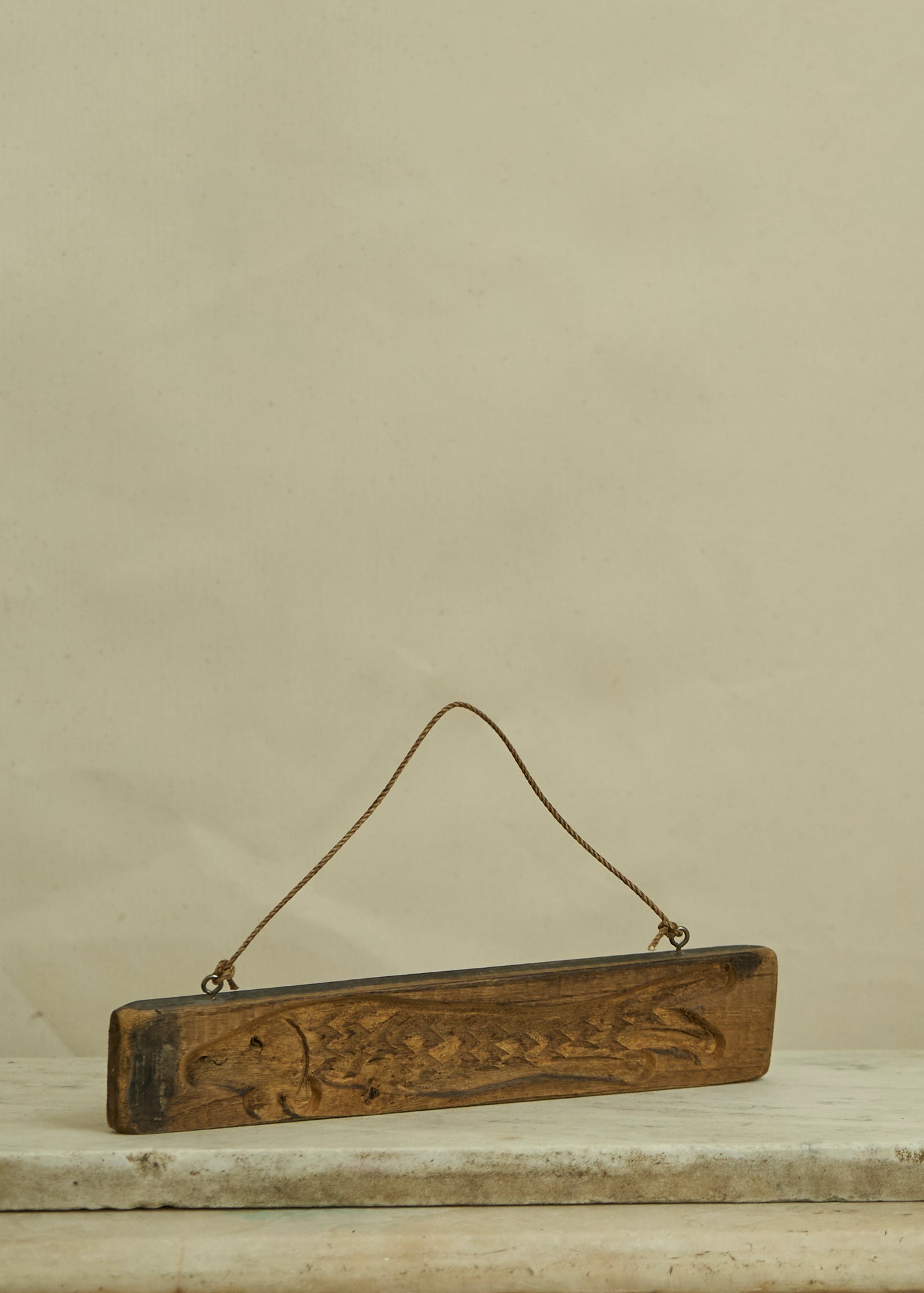 Primitive hand carved wood mold from the early 1900's. Already mounted with twine to use as wall decor.
