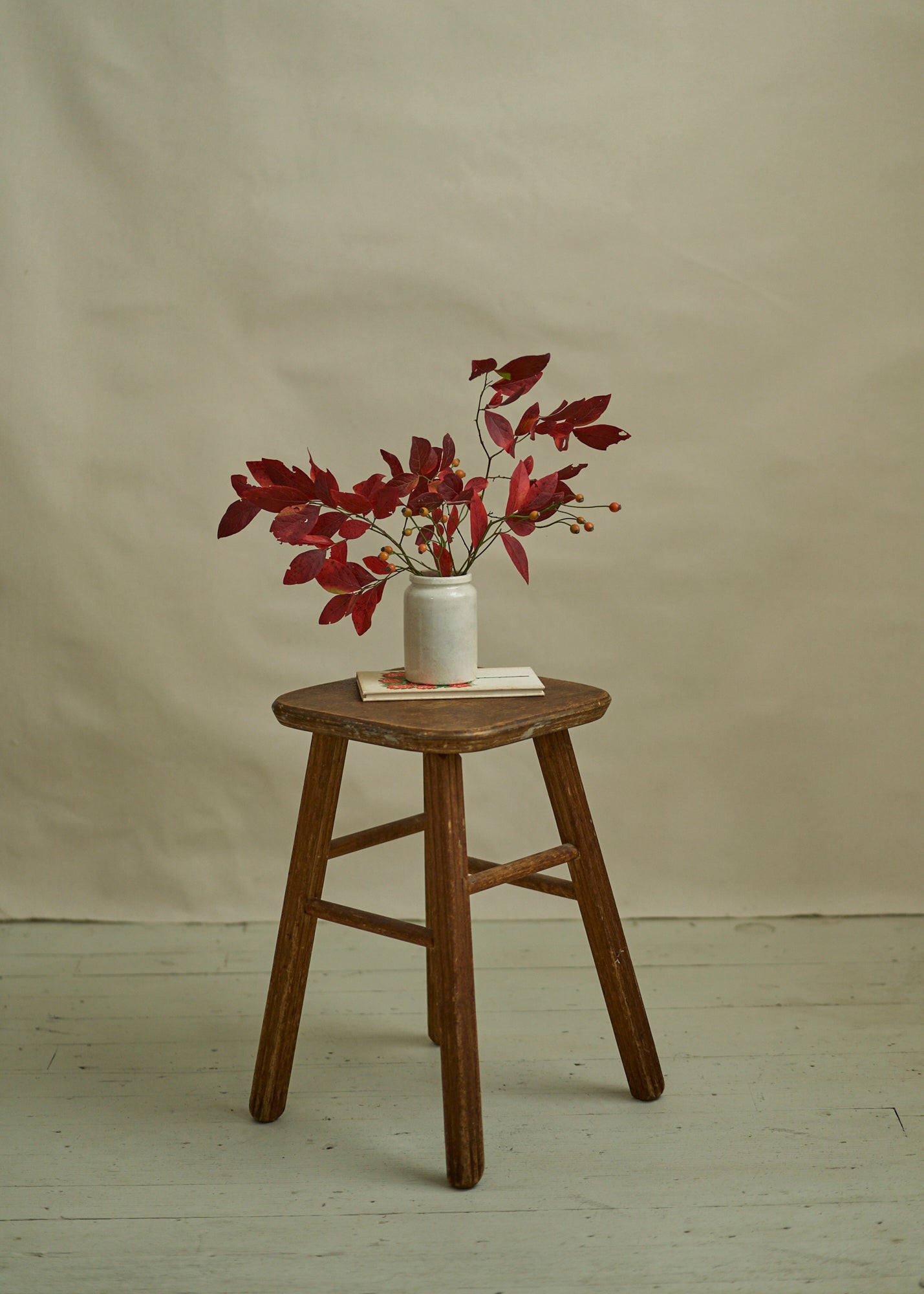 Vintage Wooden Stool with Carved Legs