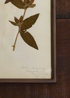 These botanical pressings were collected by Eva Beede Odell in the 1880's; each pressing is dated with the name of the plant species and the location where Eva collected the specimen. The pressings have all been carefully framed in gorgeous solid walnut frames that are ready for hanging. Each framed pressing includes a typed description about the origin of the pressings and a bit about Eva herself.