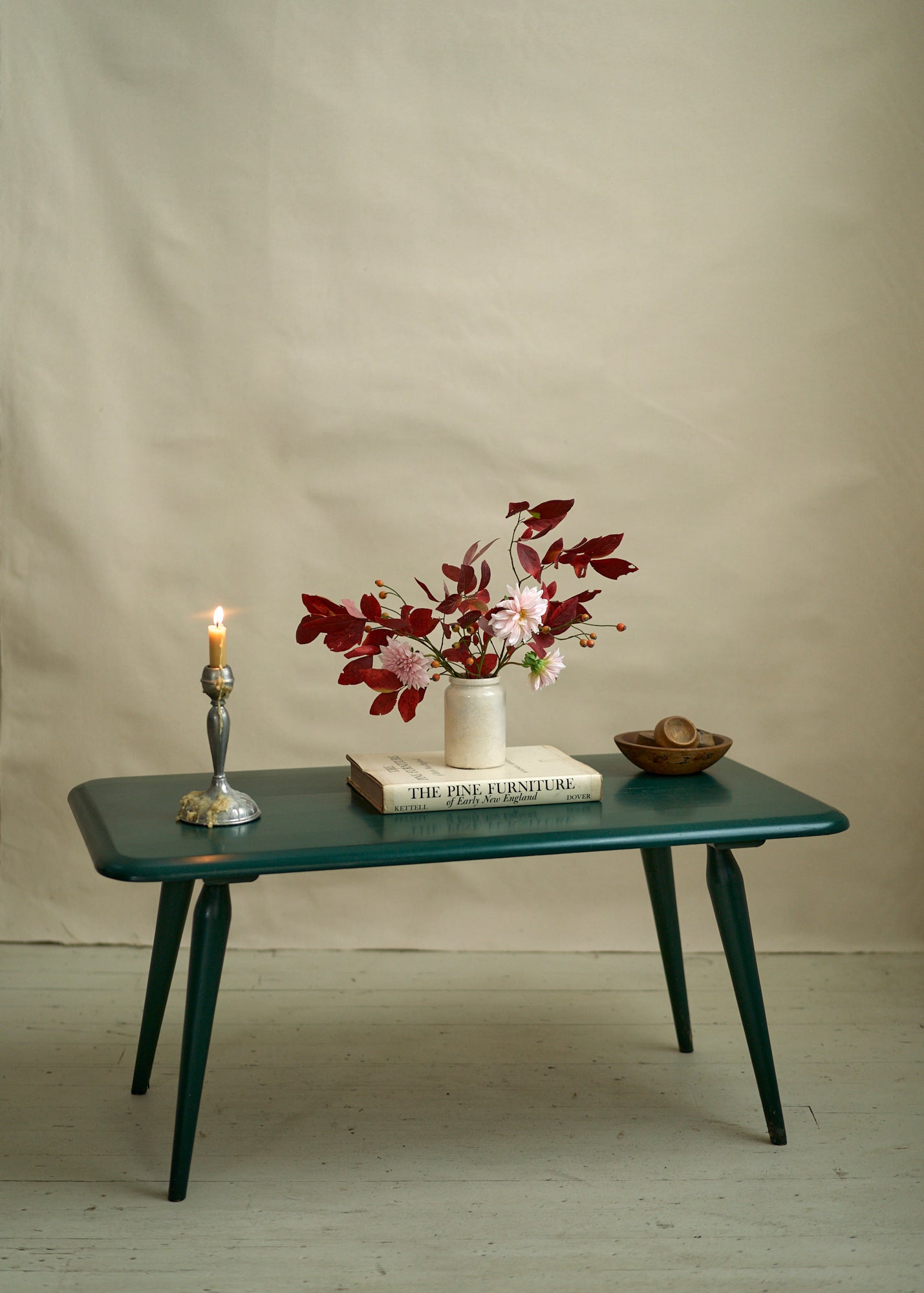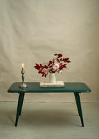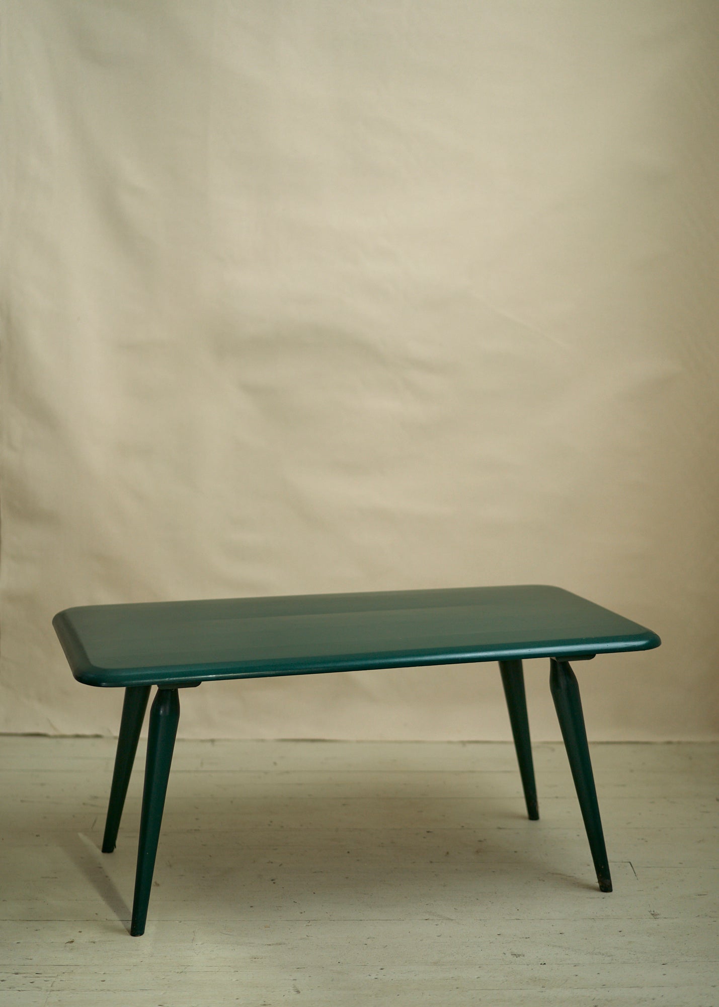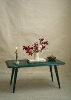 Mid century painted green coffee table with tapered legs. Timeless and sturdy.