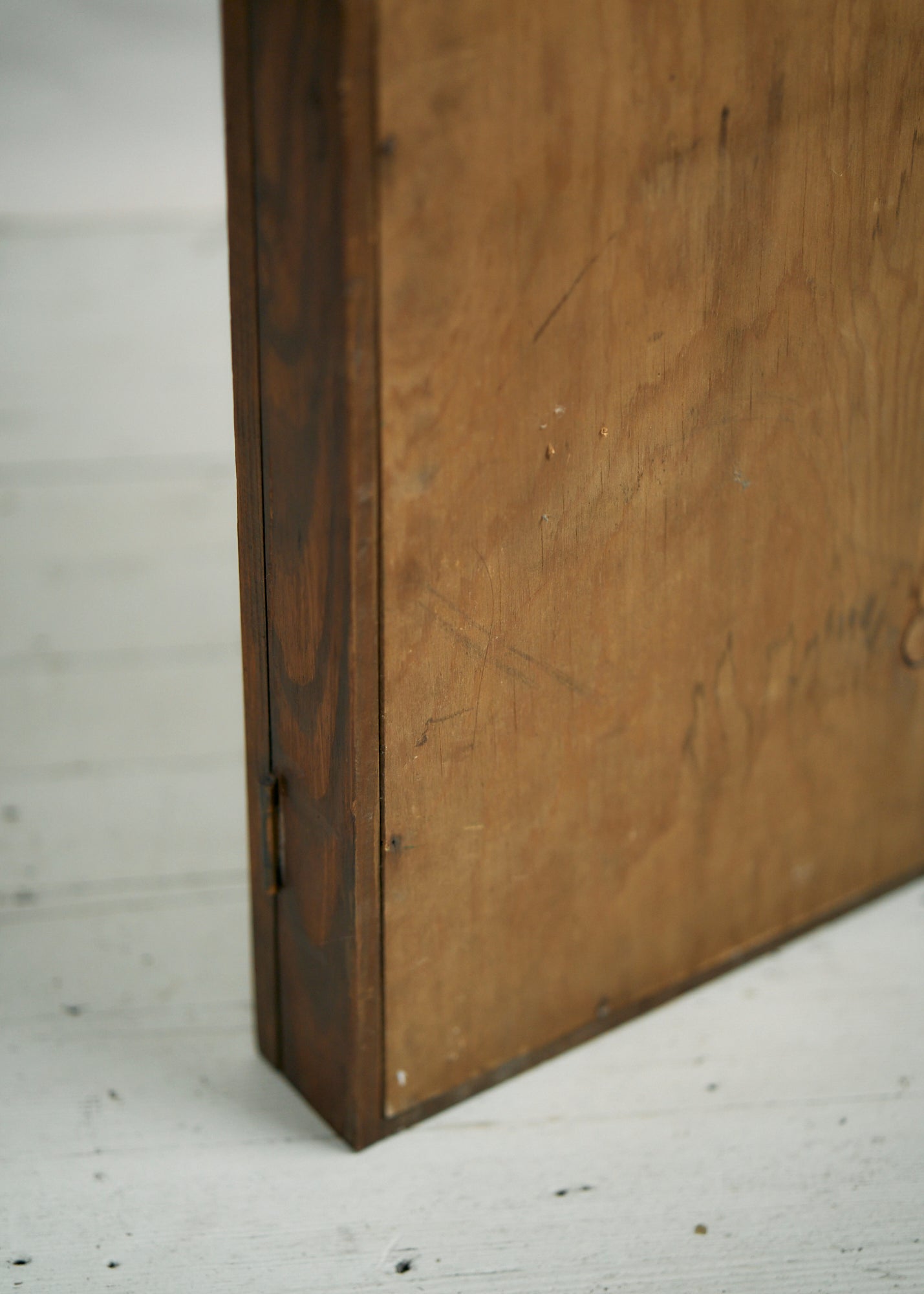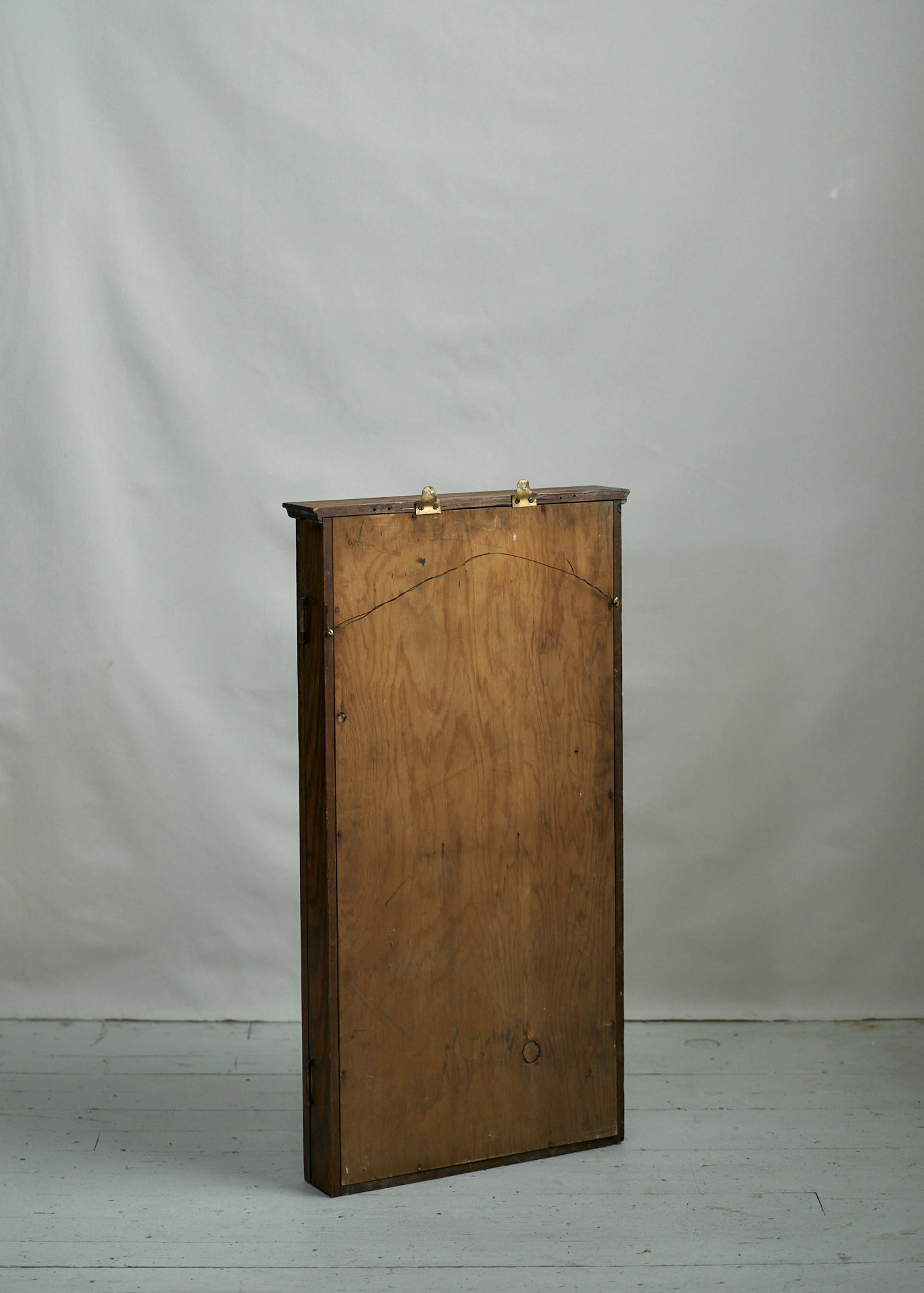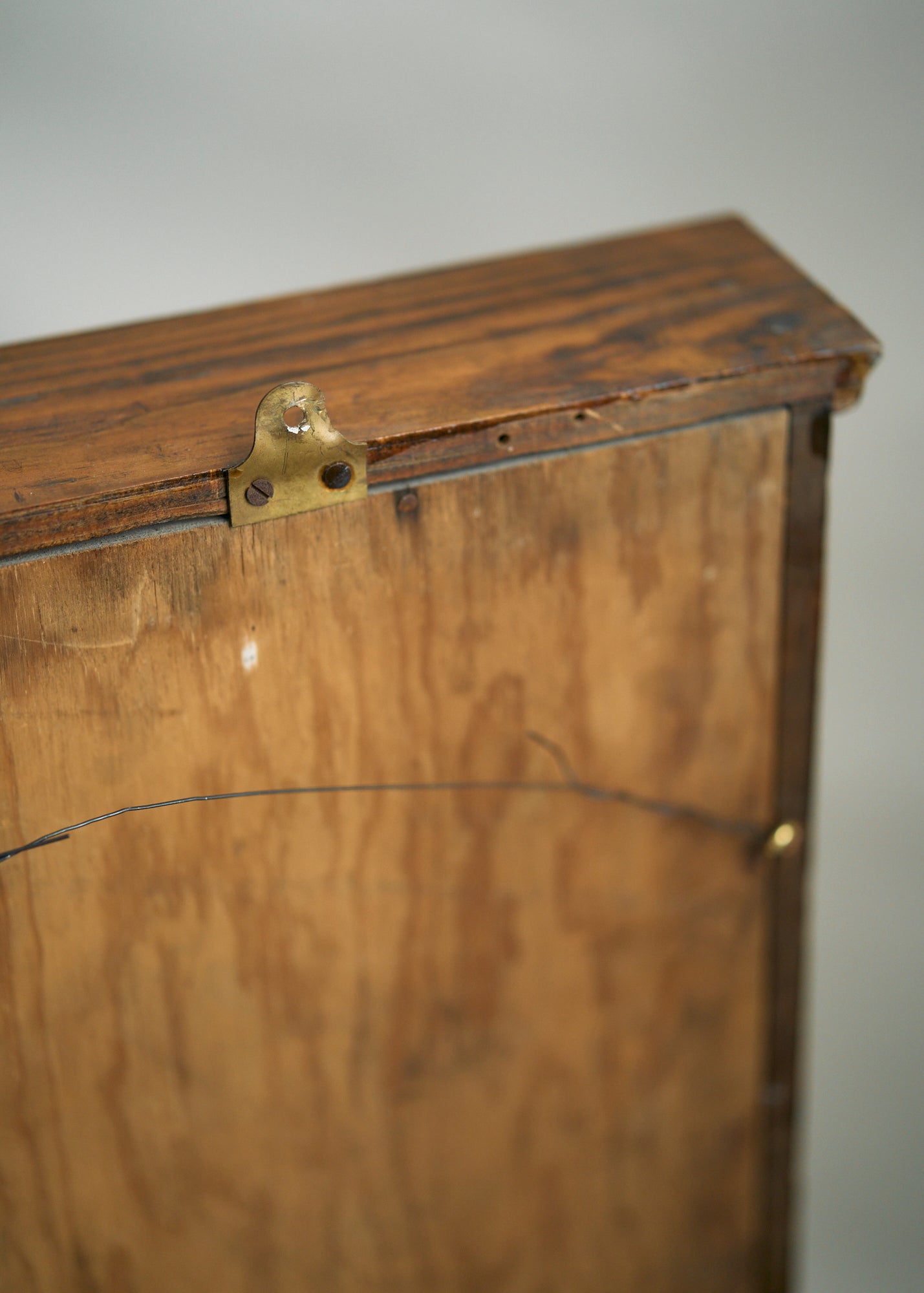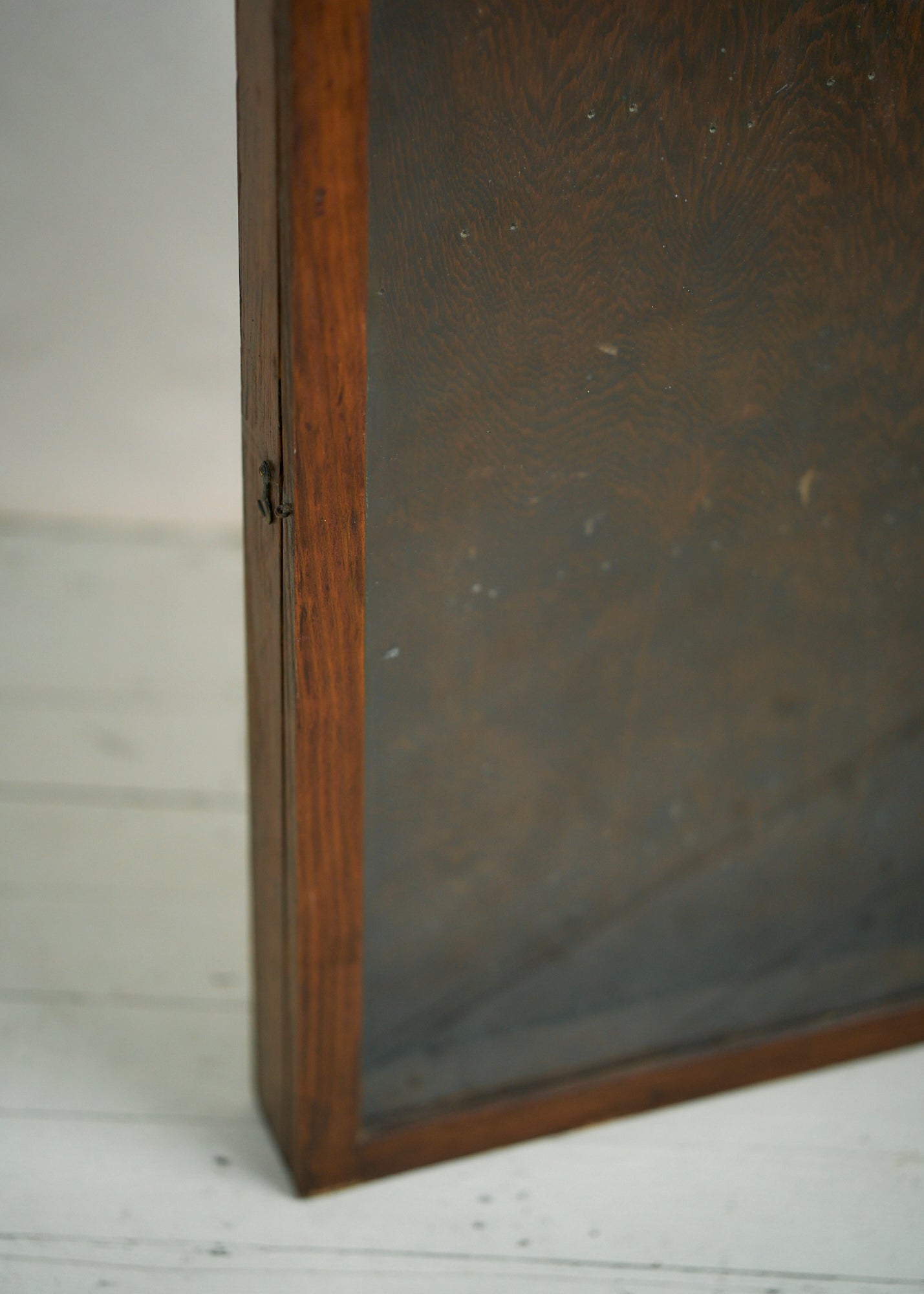 Gorgeous vintage wooden display case with glass front. Can be hung on a wall (has hardware to enable that) or can be used on a tabletop. Could also use as a shadowbox to display sentimental items. Please note there are small nail holes in the surface of the wood from its past use as a hanging display case. Can easily tuck in a piece of velvet or other fabric to cover this surface or simply embrace the storied patina.