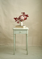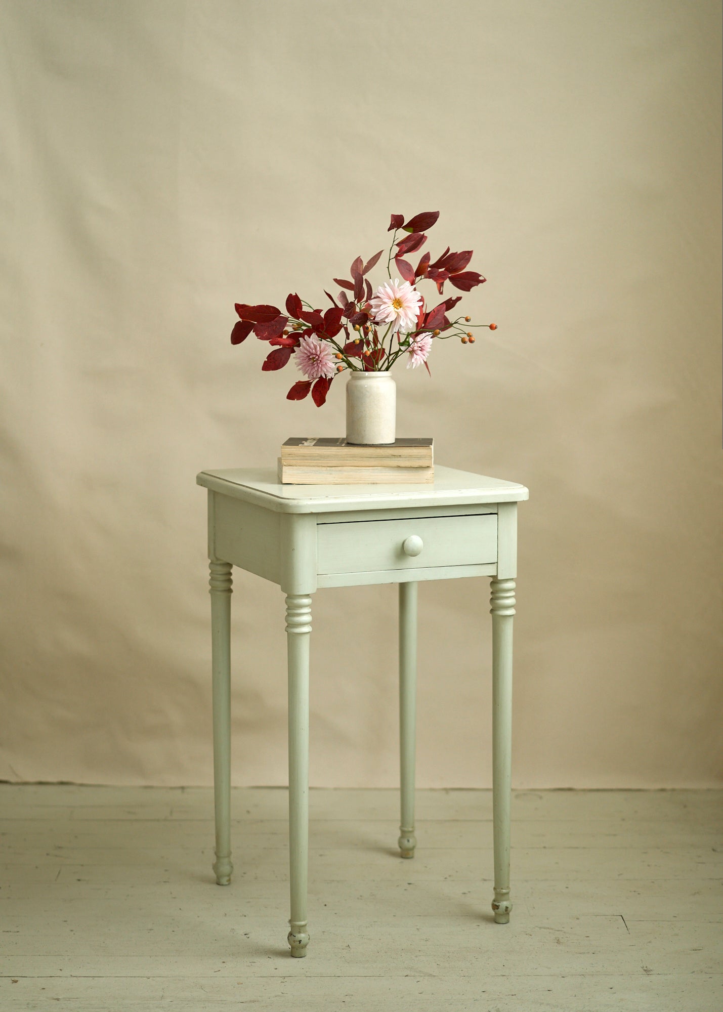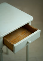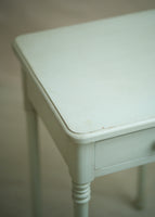 Vintage robin egg blue painted accent table with one drawer and turned leg details. Would be wonderful in a bedroom or cottage bathroom.