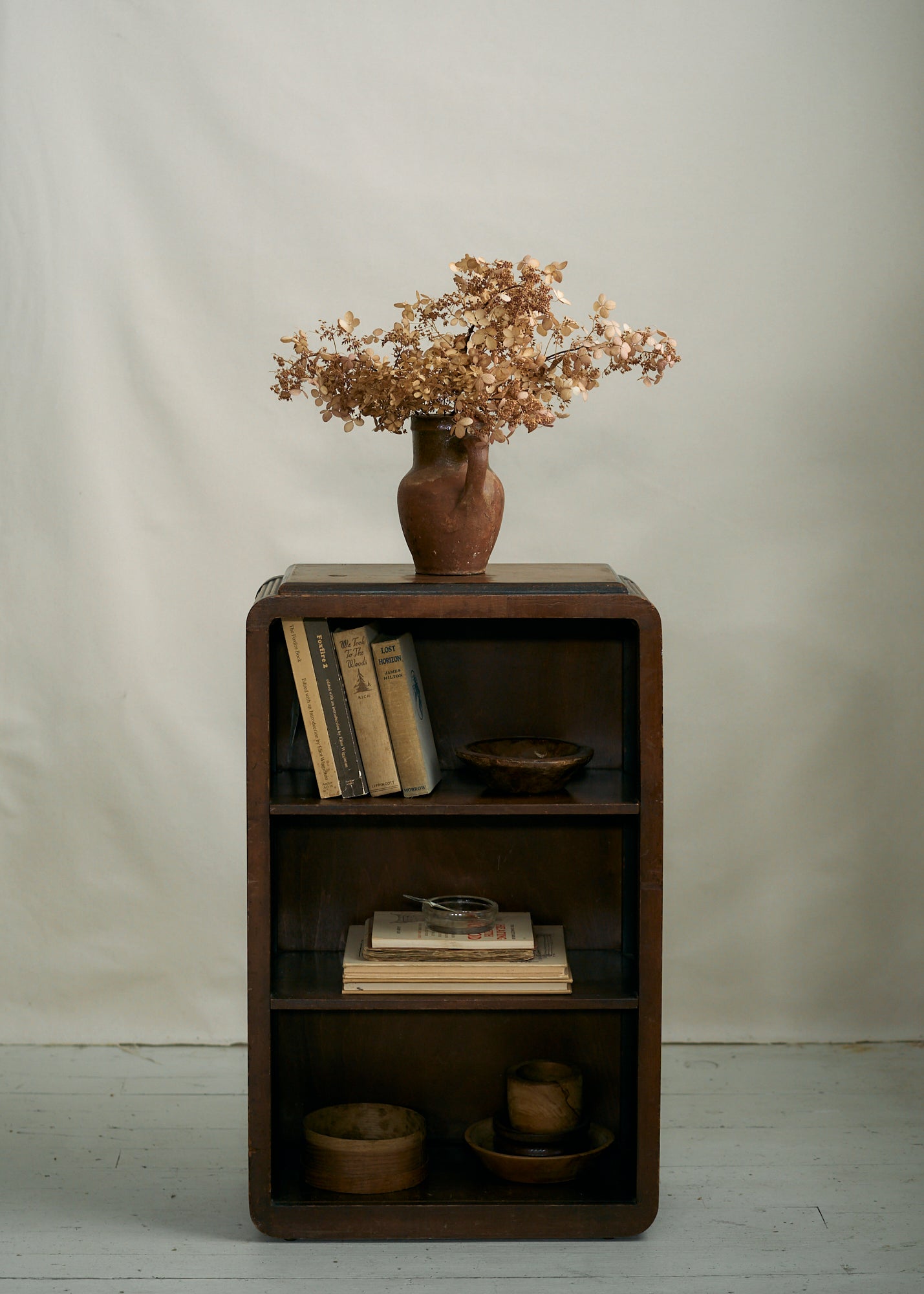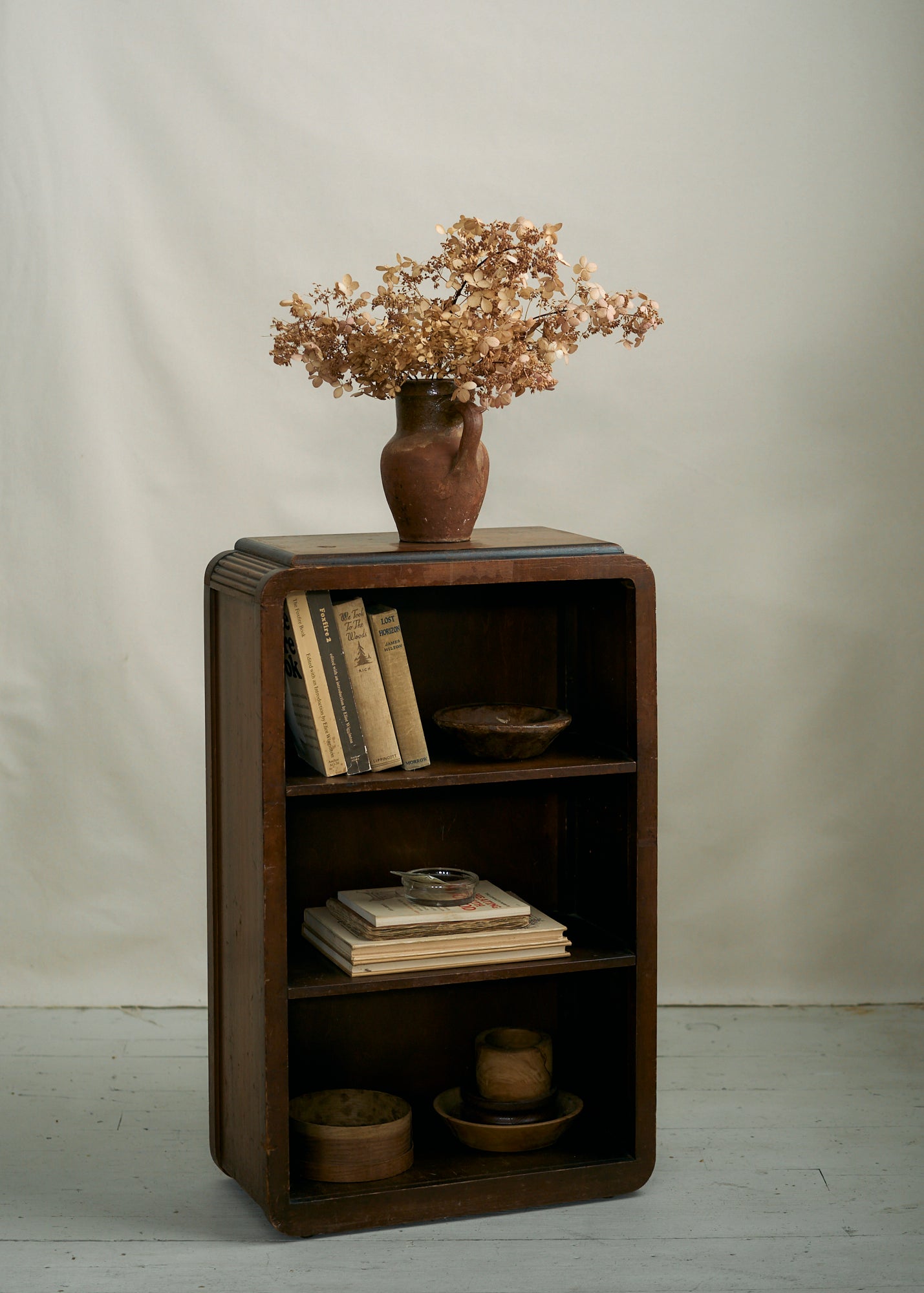 Small solid wood bookcase circa 1950. A perfect piece for a cottage or cabin or even as a bedside table.
