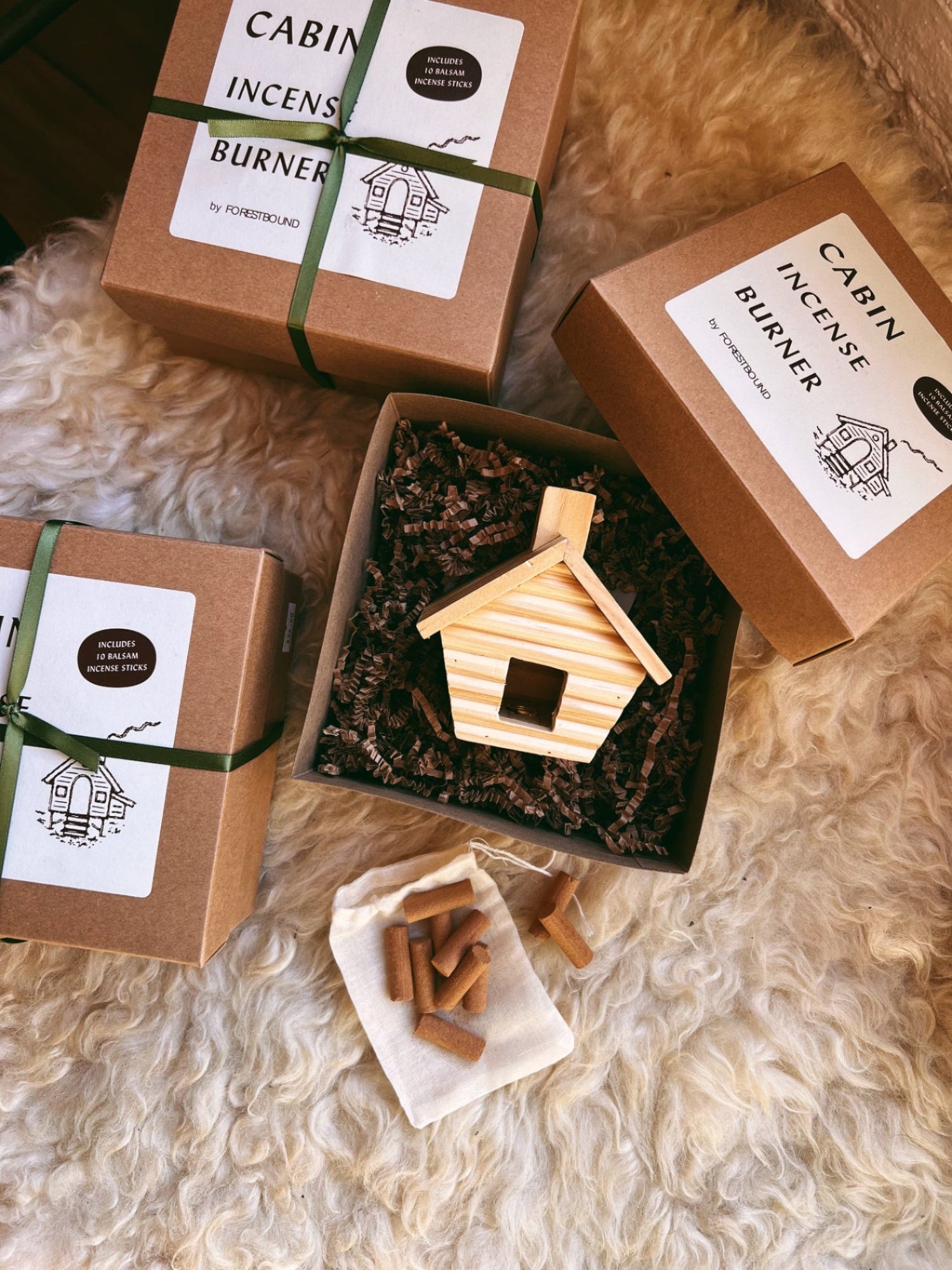 Enjoy the comforting scent of real balsam incense made from the rich fragrant tips of natural American balsam fir trees throughout the holidays, or any time you want to capture the ambiance of the New England forest. Our sweet miniature log cabin incense burner is made in the great state of Maine by a family-owned balsam products company. It makes a wonderful housewarming gift or thoughtful hostess gift, or as a souvenir to transport you back to the heart of the mountains.
