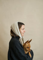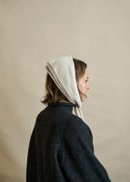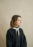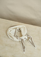 Once you feel this neck scarf you won't want to take it off! Ivory cashmere with walnut brown detailing. Wrap around your head to keep your ears warm during a walk in the woods or tie around your shoulders for extra comfort and warmth during the long winter days.