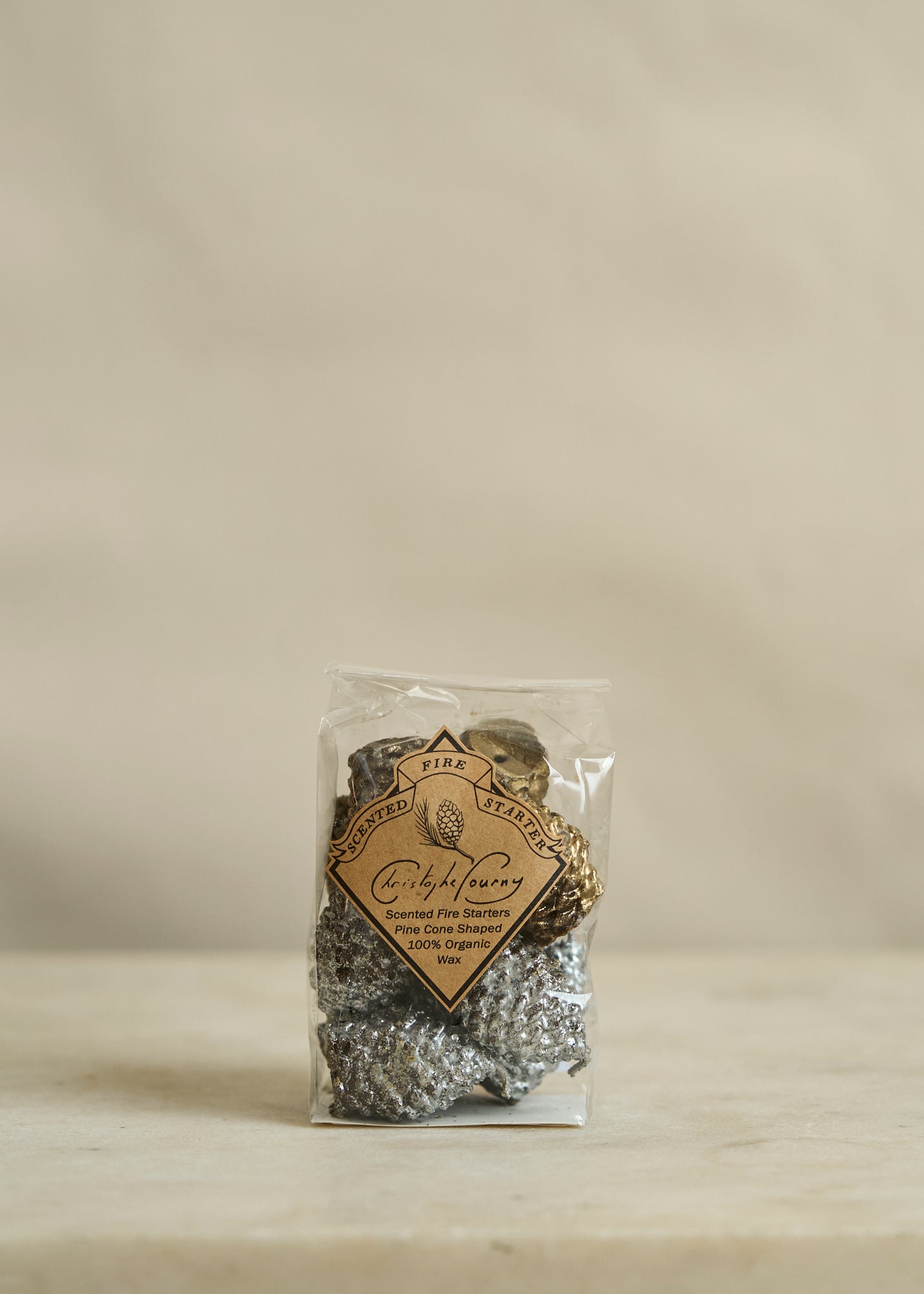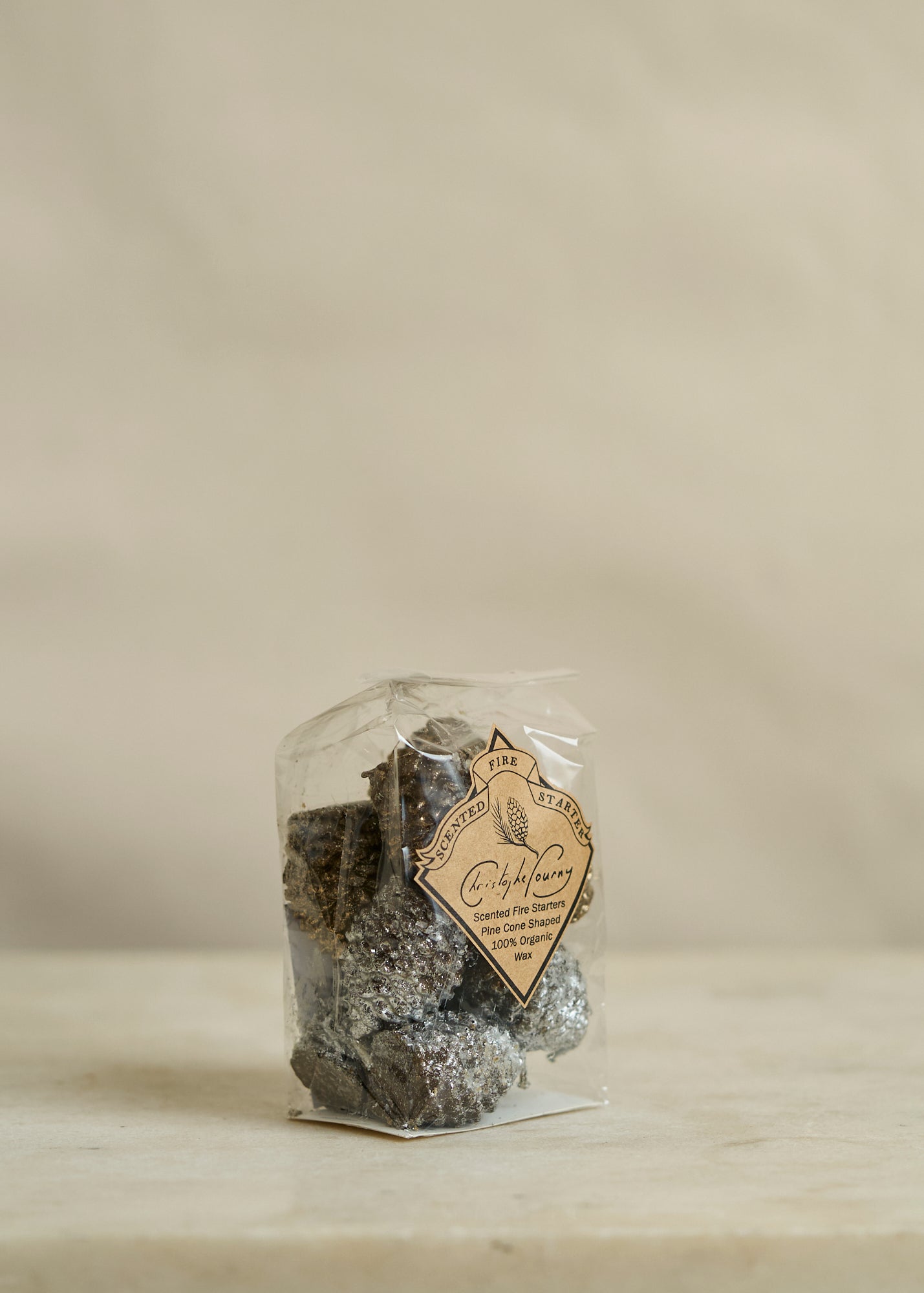 These pine cone shaped firestarters will ignite your wood burning fireplace, wood stove, or bbq grill. Made from all natural ingredients, each starter will burn for approximately 20 minutes. Simply place in fire / grill and light the wick.