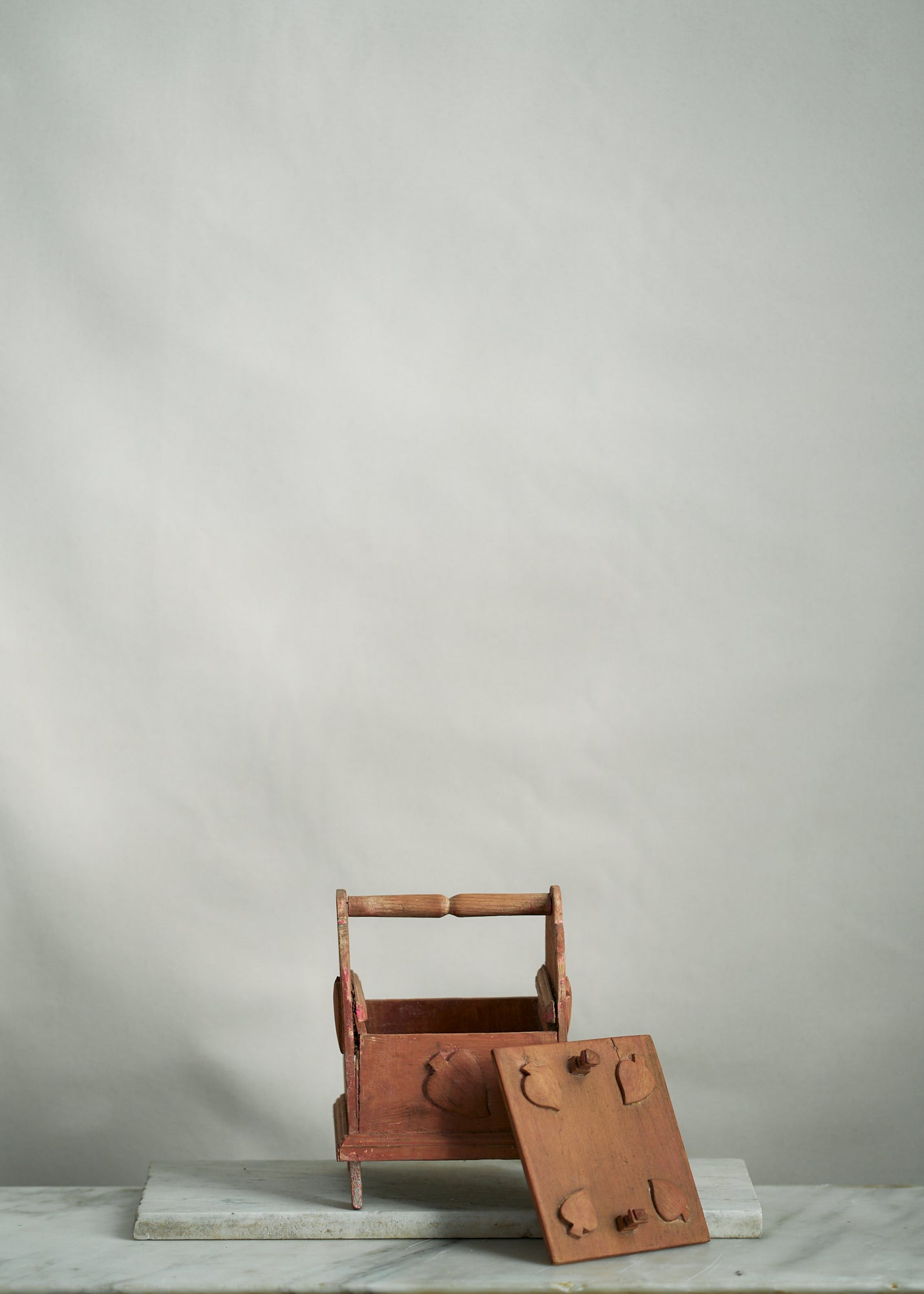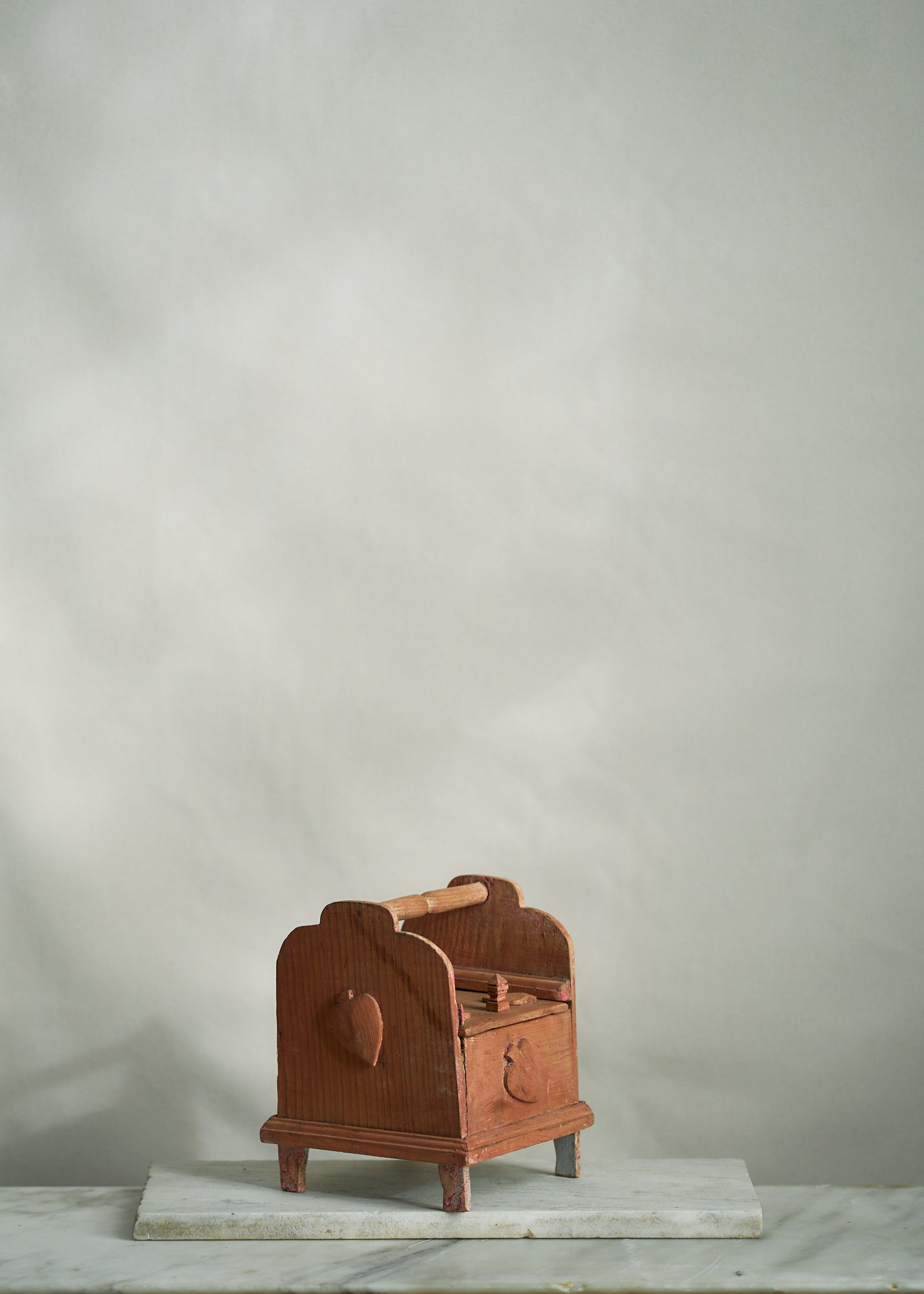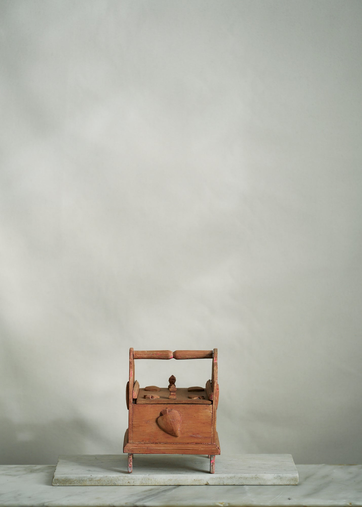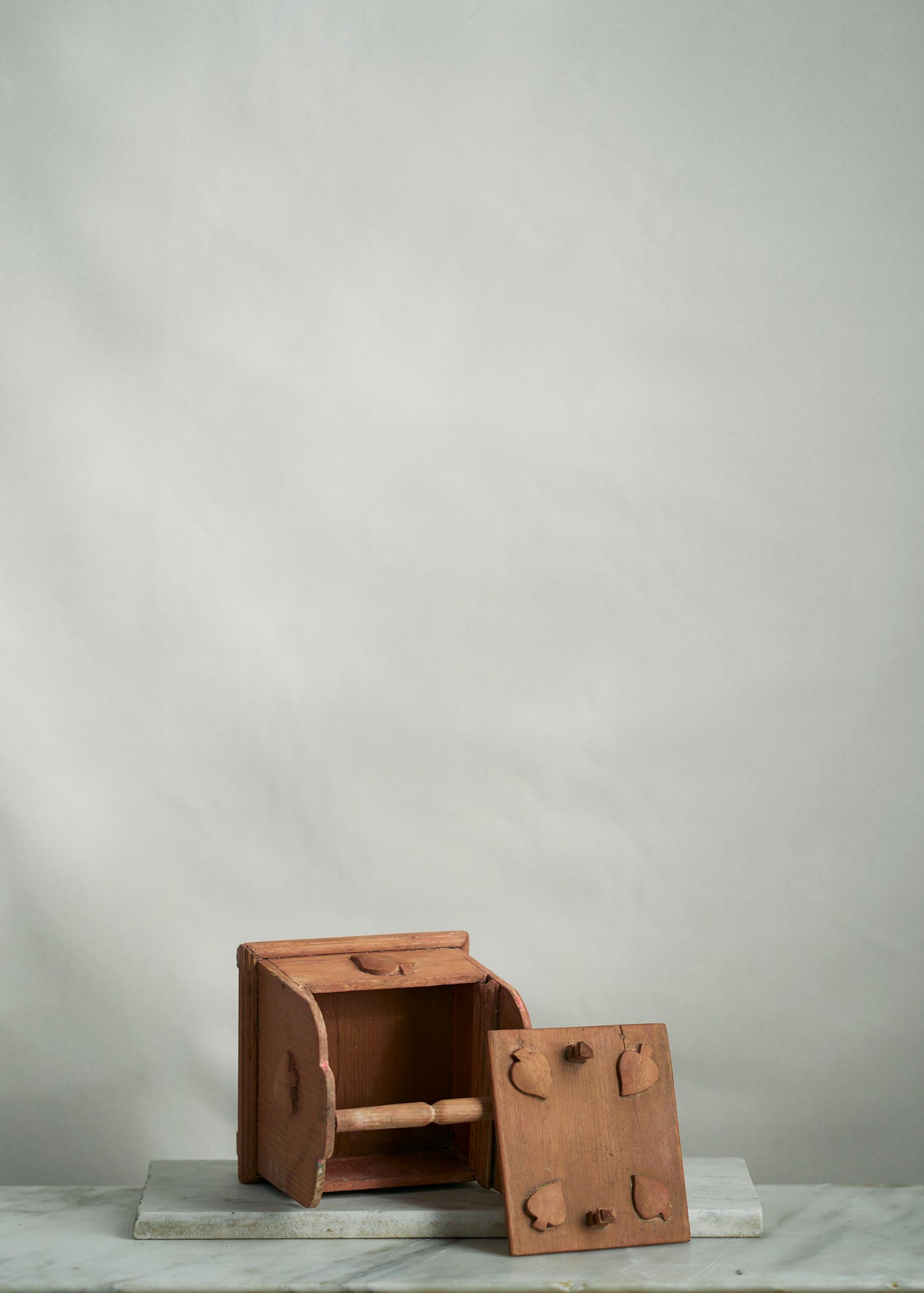 Unique wooden folk art handmade slide top box with hand carved spade detailing. An incredibly special piece that would be perfect for storing important trinkets, ephemera, etc.