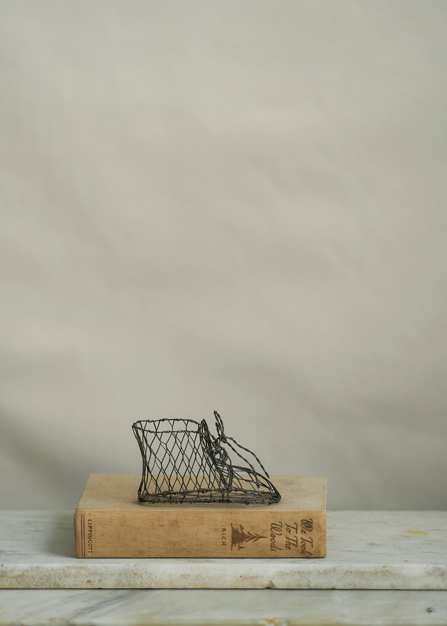 Unique folk art shoe handmade with wire. Adorable vintage decor!