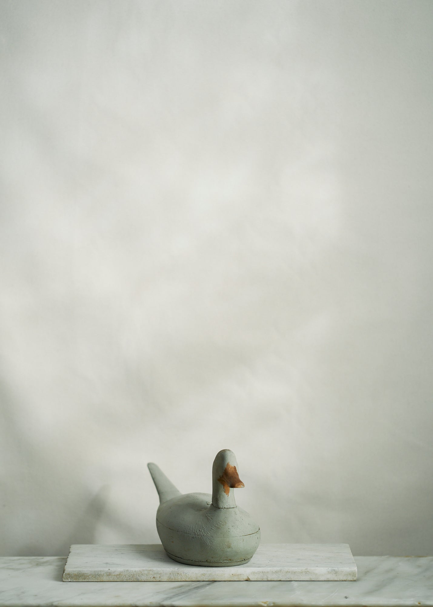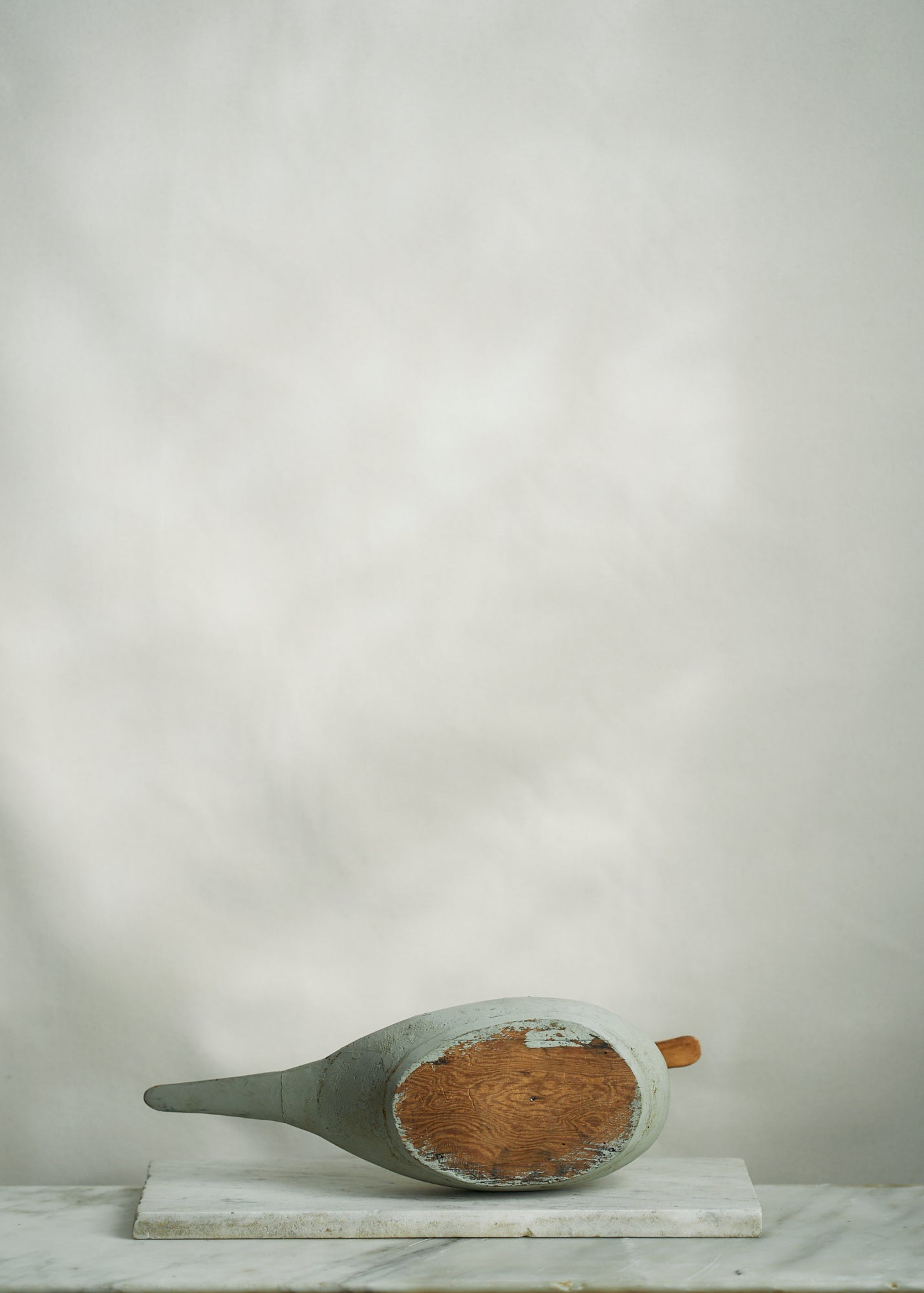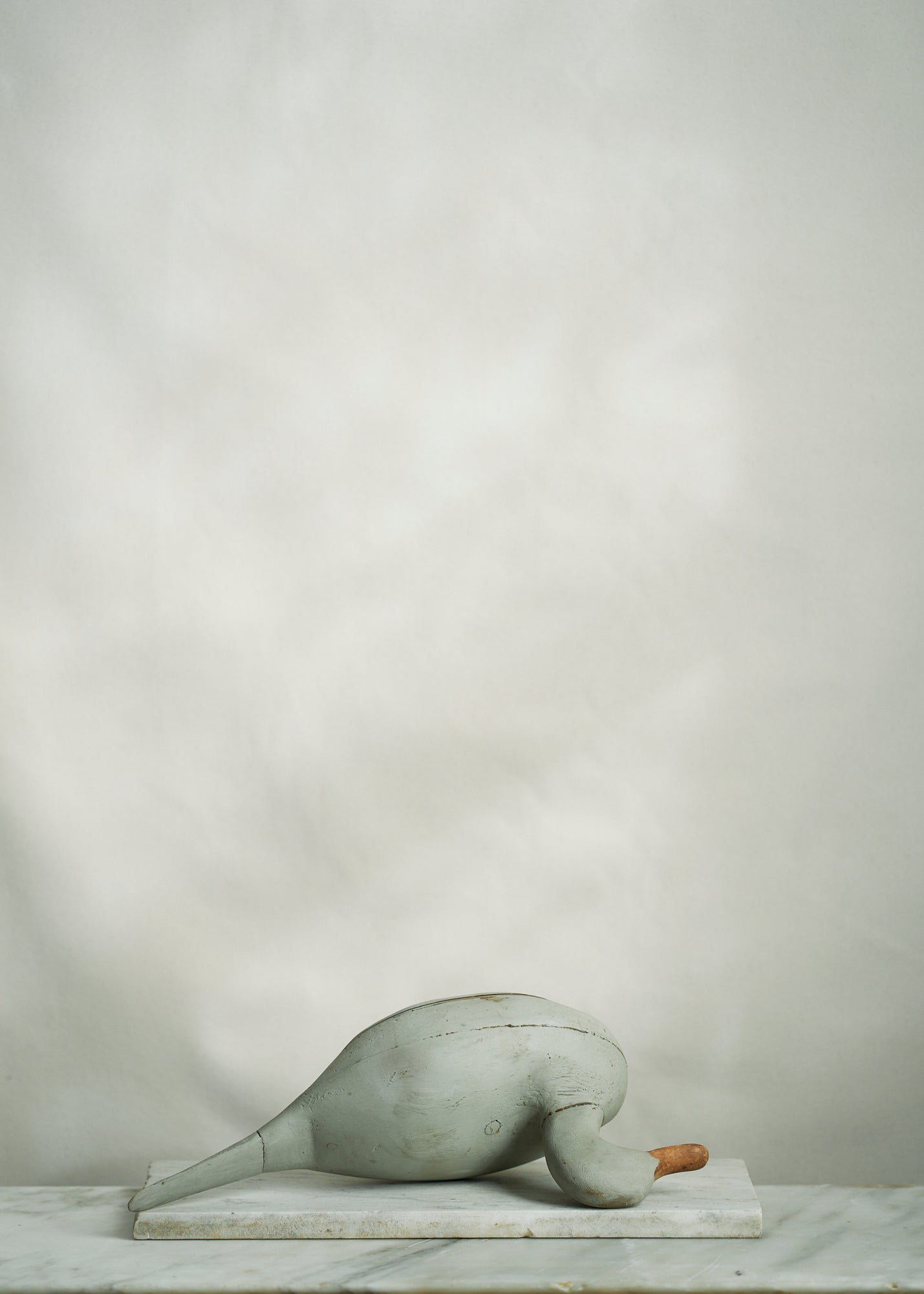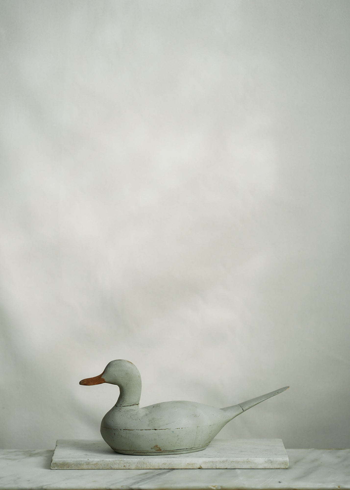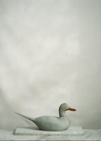 Handmade folk art wooden decoy duck circa 1950. A stunning piece painted a unique shade of slate grey.