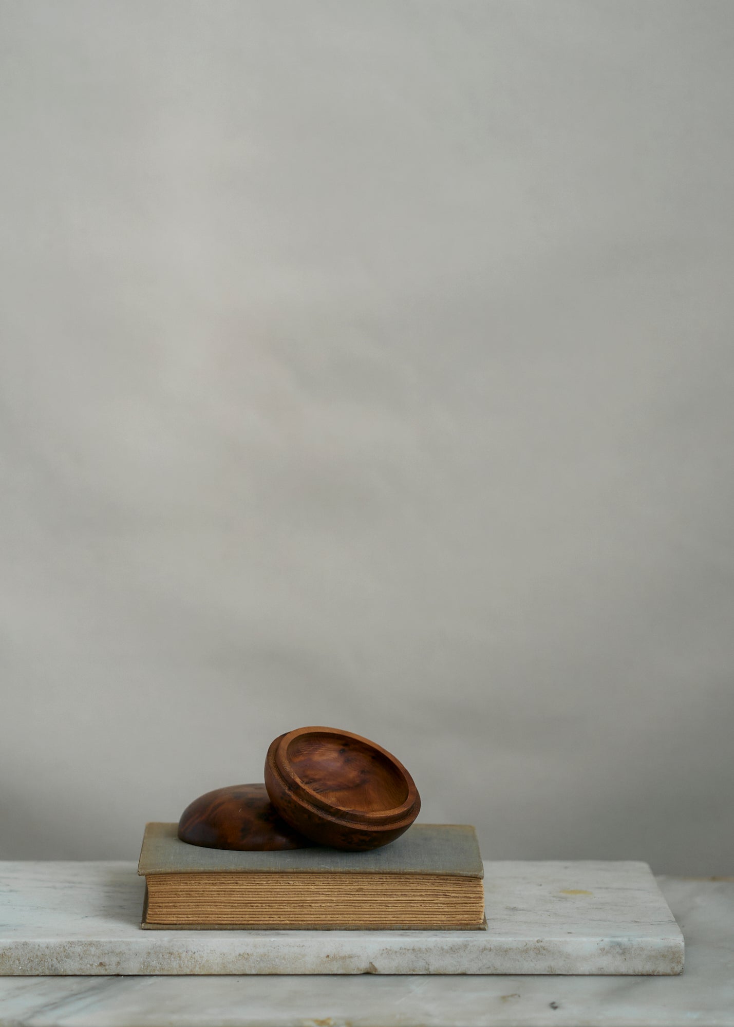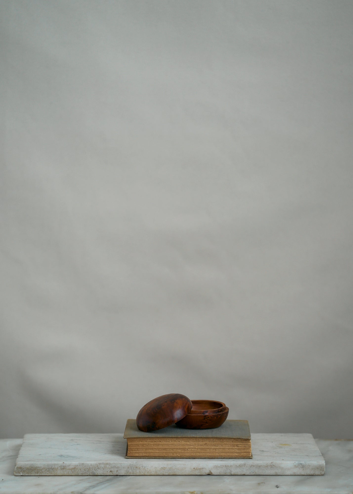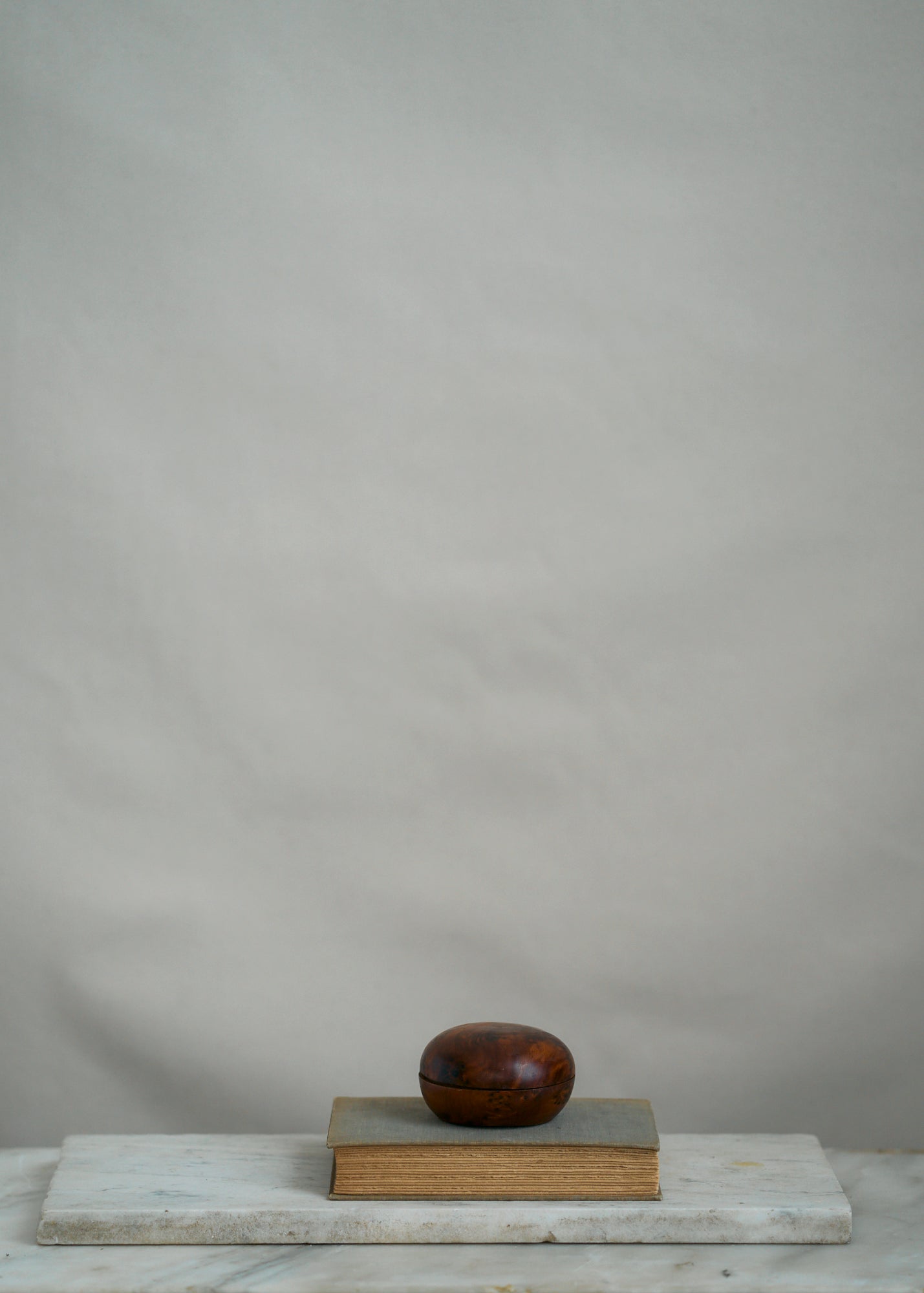 Beautiful vintage handmade burl wood trinket box. Round with snug lid.