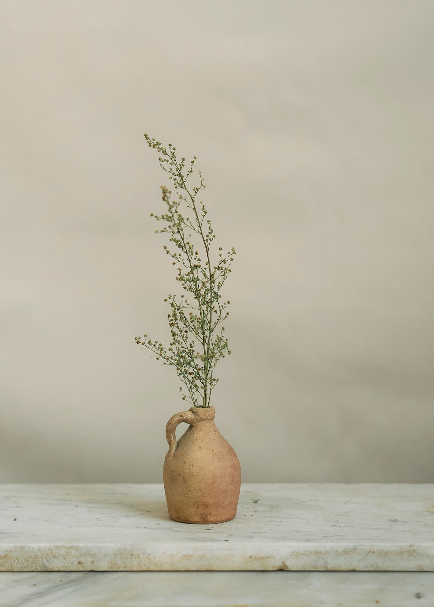 Charming, vintage miniature terracotta jug. Wonderful decor on its own or display your favorite sprig of dried florals.