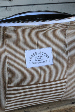 Durable utility pouch made out of deadstock brown and beige striped canvas.